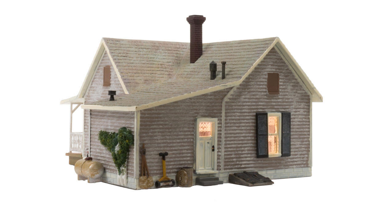 The Old Homestead is a bit rough around the edges and the perfect representation of an old rural bungalow, beautifully weathered and loaded with detail. Building details include an outhouse, rusting propane tank, a couple of old barrels, a mailbox, old Bowser asleep on the front porch, and more. See photos for footprint.