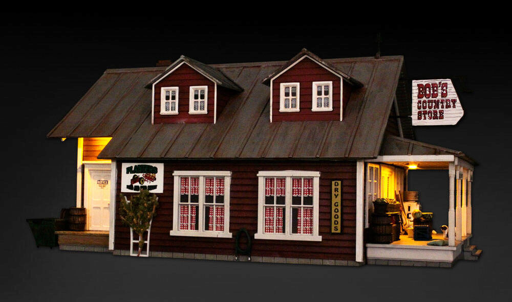 Business is booming on your layout with the Country Store Expansion. The local country store is expanding, construction of its addition is well underway, and there are loads of details to tell the story. Details include weathered clapboard siding, a metal roof, screen doors, an ice machine, tools and wood scraps, signage, a staircase to the upper floor, and exterior lighting. See photos for footprint.