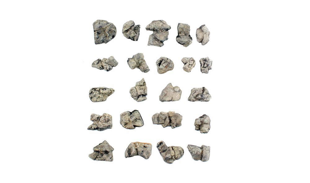 22 rocks measuring 1 1/8 in - 1 1/2 in l x 3/4 in - 1 3/4 in h ea