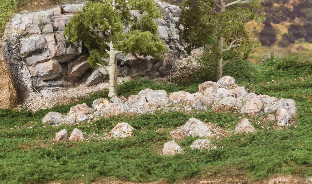Precast plaster and hand-painted. Each rock is unique. Use Boulders for rocks at quarry sites, mining operations, road cuts and more.