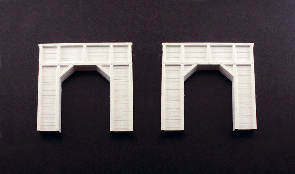 Create a timber tunnel portal over a single N scale track. Color with Earth Colors™ Liquid Pigment. Set contains 2 pieces.