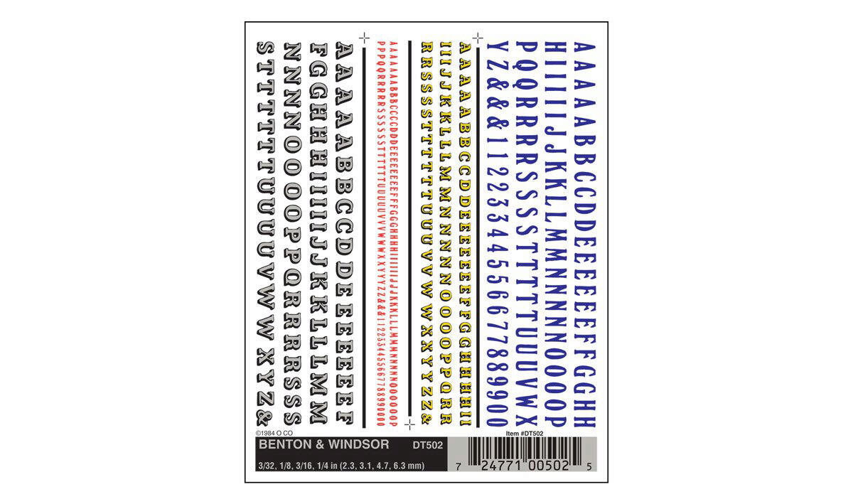 Font sizes 3/32 in, 1/8 in, 3/16 in, 1/4 in (2.3 mm, 3.1 mm, 4.7 mm, 6.3 mm)