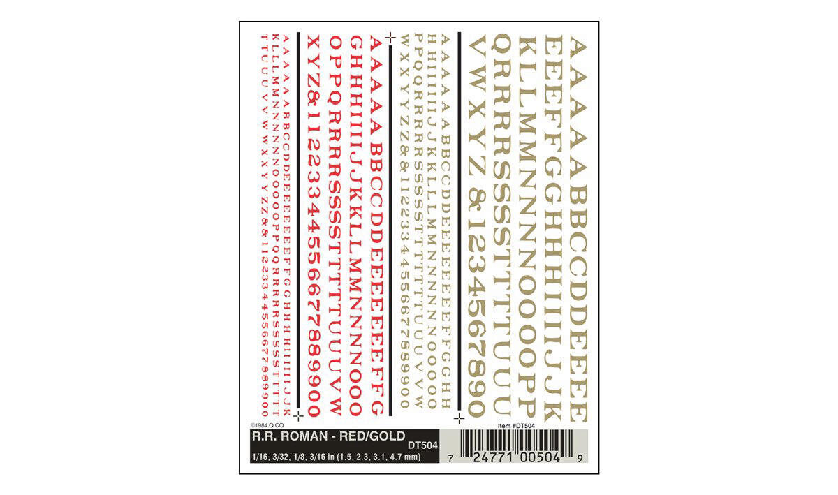 Font sizes 1/16 in, 3/32 in, 1/8 in, 3/16 in (1.5 mm, 2.3 mm, 3.1 mm, 4.7 mm)