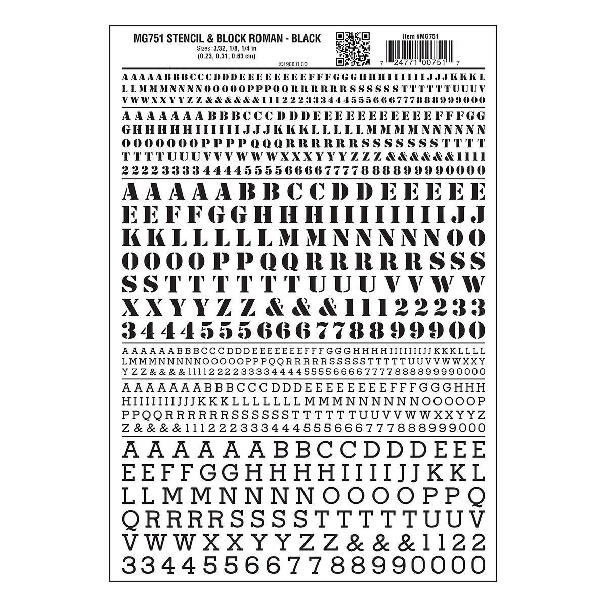 Stencil Letter sizes: