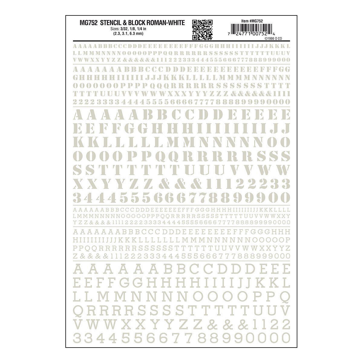 Stencil Letter sizes: