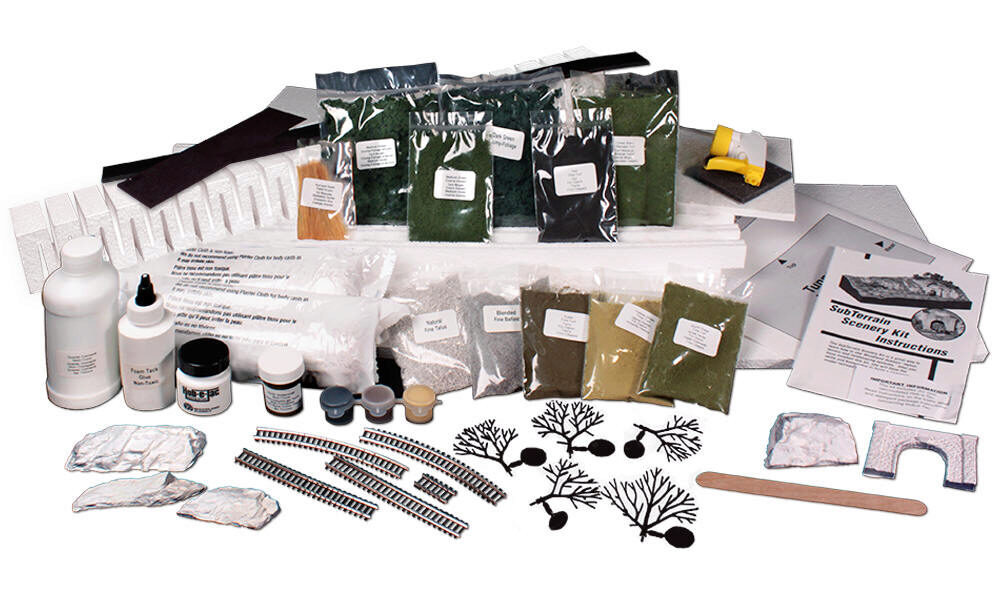 Learn the five steps of the revolutionary SubTerrain Lightweight Layout System®. Build this 12" x 24" (30.4 cm x 60.9 cm) N scale diorama with no mess or complicated calculations. Create realistic terrain features with Plaster Cloth, rock castings and a tunnel portal. Then, learn to make trees and landscape with various ground covers, Ballast, Talus and other scenery products.
