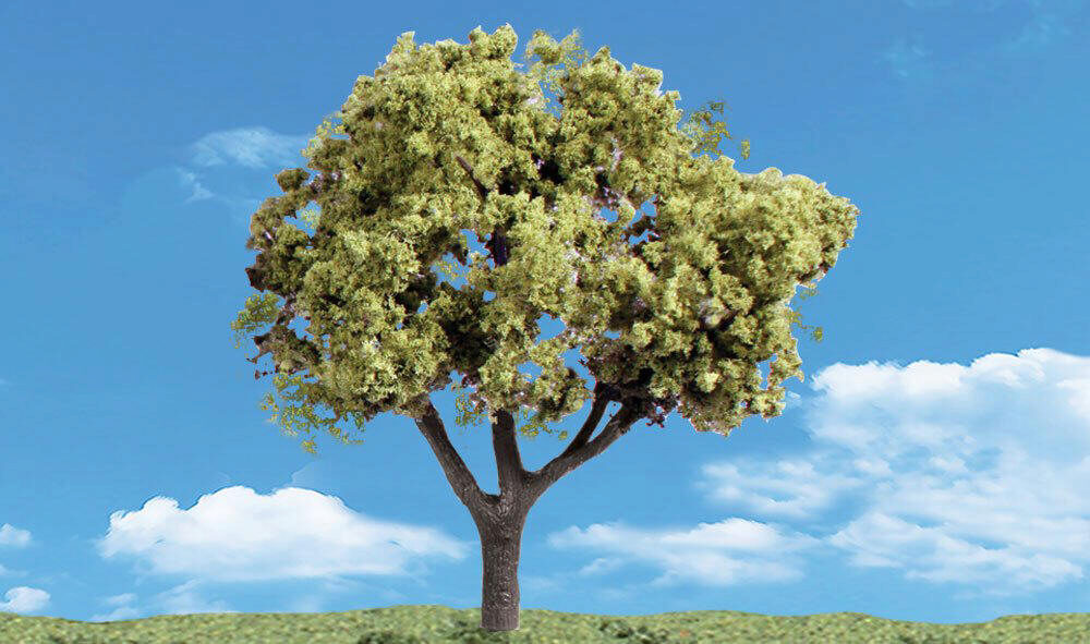 Finely detailed, painted and flexible trunks and foliage in a variety of natural contrasts and highlights. Use combinations of types and sizes throughout your layout for superior realism. Trees have planting pin and optional detachable base for temporary placement.