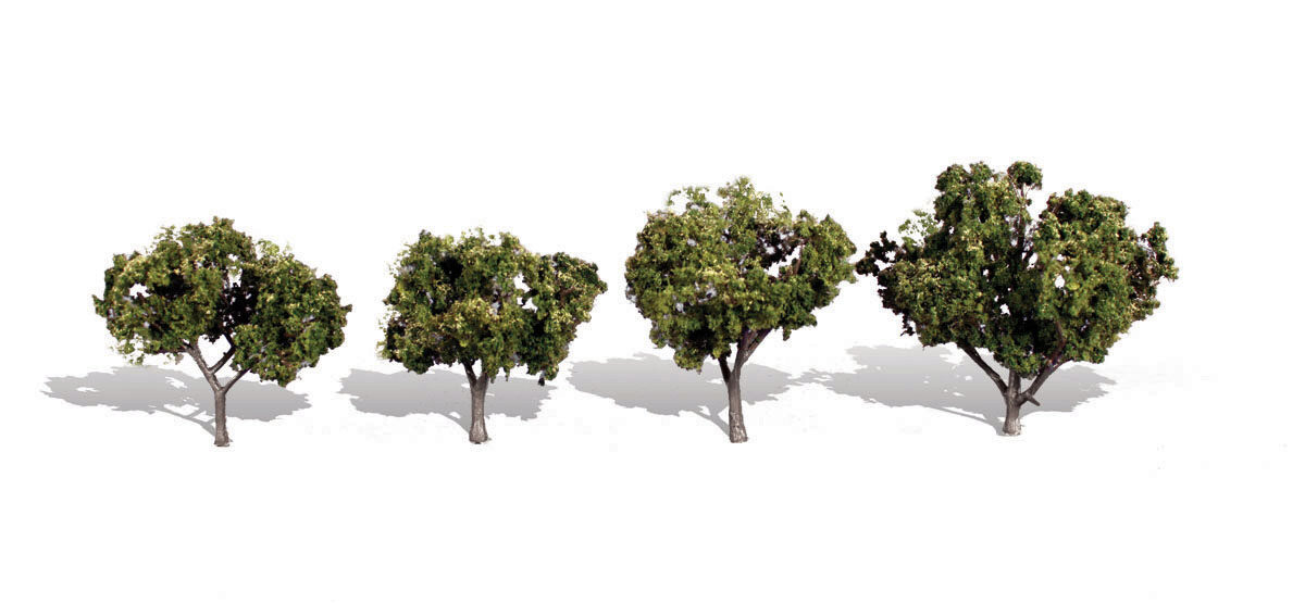 Finely detailed, painted and flexible trunks and foliage in a variety of natural contrasts and highlights. Use combinations of types and sizes throughout your layout for superior realism. Trees have planting pin and optional detachable base for temporary placement.