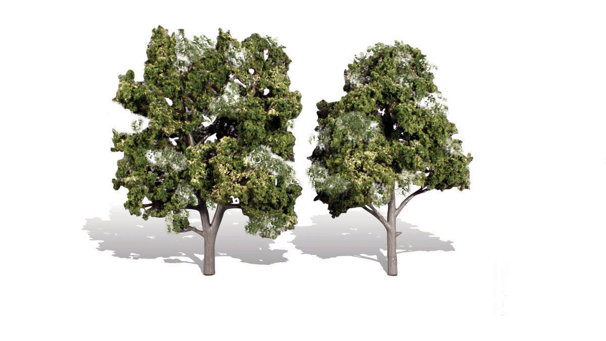 Finely detailed, painted and flexible trunks and foliage in a variety of natural contrasts and highlights. Use combinations of types and sizes throughout your layout for superior realism. Trees have planting pin and optional detachable base for temporary placement.