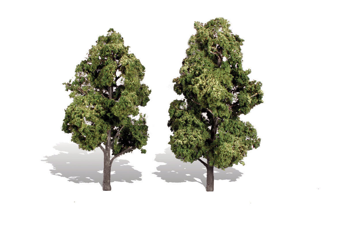 Finely detailed, painted and flexible trunks and foliage in a variety of natural contrasts and highlights. Use combinations of types and sizes throughout your layout for superior realism. Trees have planting pin and optional detachable base for temporary placement.