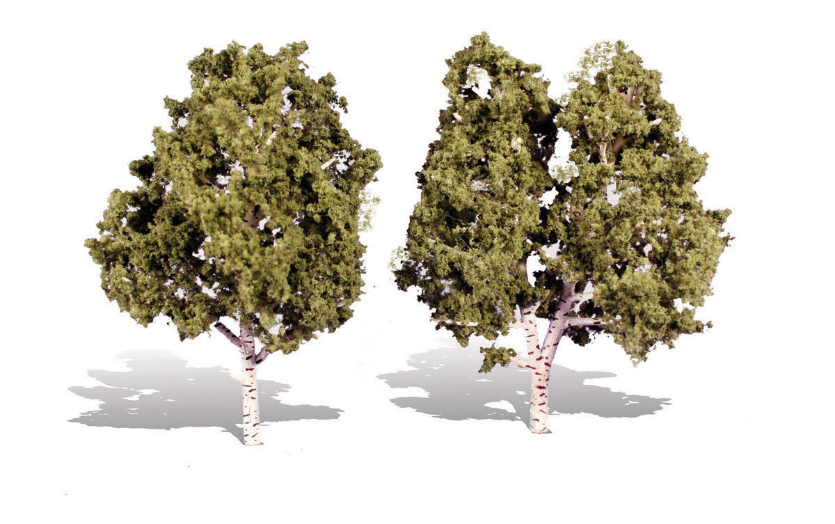 Finely detailed, painted and flexible trunks and foliage in a variety of natural contrasts and highlights. Use combinations of types and sizes throughout your layout for superior realism. Trees have planting pin and optional detachable base for temporary placement.
