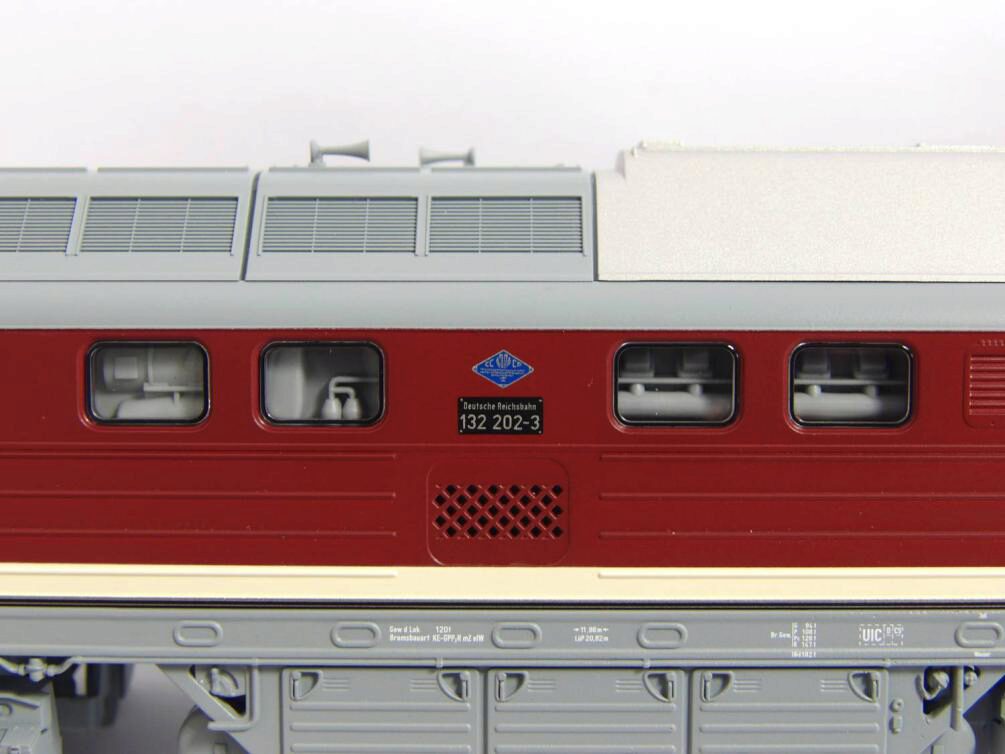 Mit den BR 132/232 offeriert PIKO ein weiteres hochdetailliertes Modell eines DR-Klassikers. Das PIKO Modell überzeugt durch den gelungen Formenbau und die originalgetreue Umsetzung aller relevanten Details der jeweiligen Vorbildmaschine. Die PIKO Modelle der Baureihen 132 der DR bzw. 232 der Deutschen Bahn AG zeichnen sich u.a. durch feinste Lackierung und Bedruckung, freistehende Griffstangen, einen Zinkdruckgussrahmen und einen kräftigen fünfpoligen Motor aus, der in Kombination mit zwei ausgewuchteten Schwungmassen ausgeglichene Laufeigenschaften garantiert. Die Beleuchtung erfolgt mittels LEDs. Die Führerstandsbeleuchtung und das Schlusslicht lassen sich mit einem PluX22 Decoder digital schalten. Das Modell verfügt über zwei Haftreifen, die in diagonaler Anordnung auf den inneren Achsen der beiden Drehgestelle sitzen. Die Stromabnahme erfolgt über sämtliche Räder. Das Modell wird mit einer PluX22-Schnittstelle geliefert, eine Soundnachrüstung mit größtmöglichem Lautsprecher ist vorbereitet.