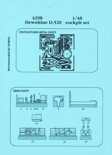 Dewoitine D.520 Cockpit Set für Tamiya Bausatz