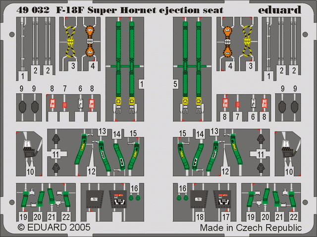 F-18E Super Hornet ejection seat für Hasegawa Bausatz Farbig bedruckter Fotoätzsatz