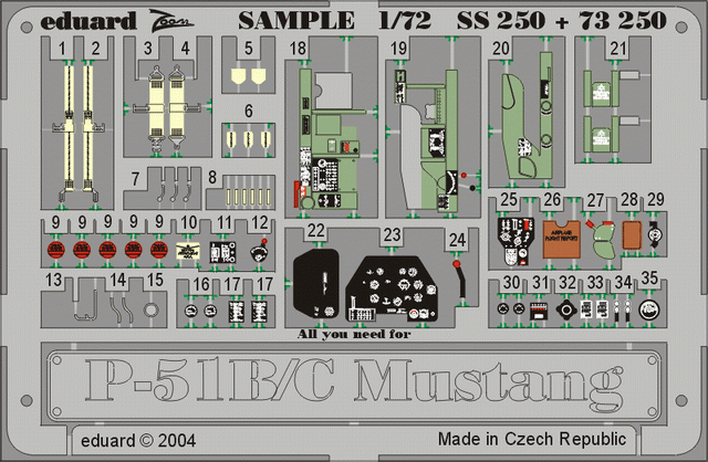 P-51B/C Mustang Bemalter Fotoätzsatz für Academy Bausatz
