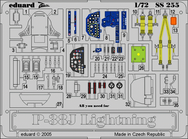 P-38J Lightning für Academy Bausatz Fotoätzteile für Academy Bausatz