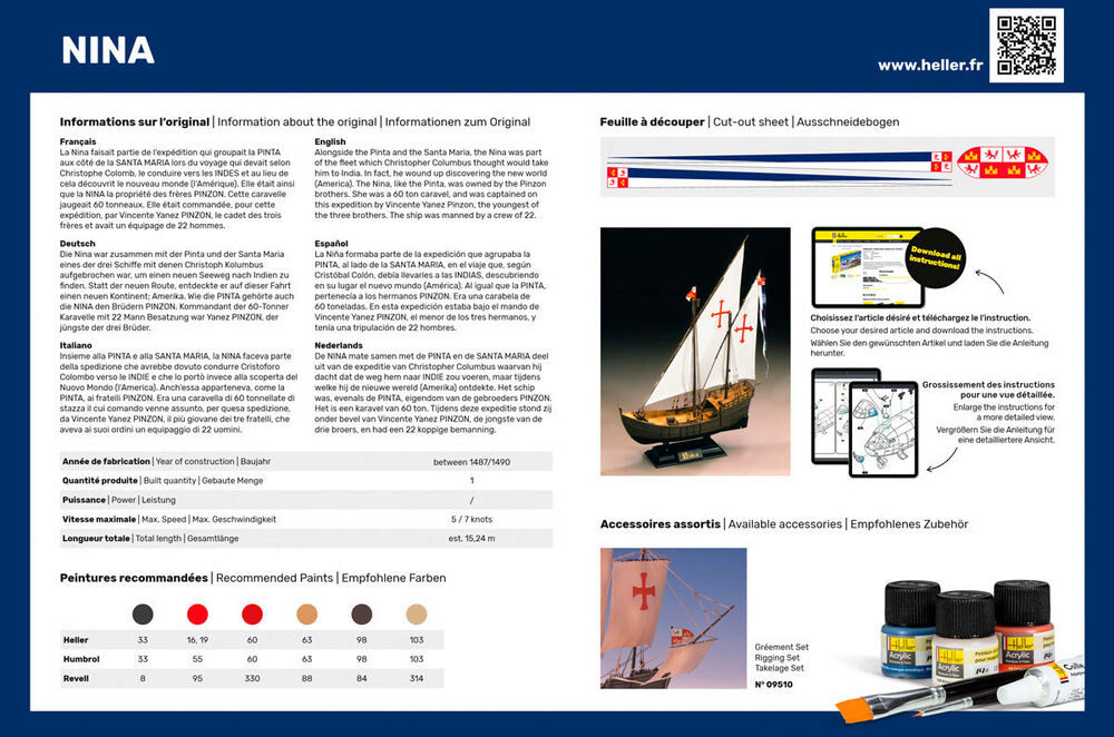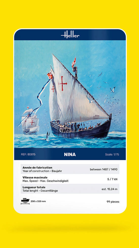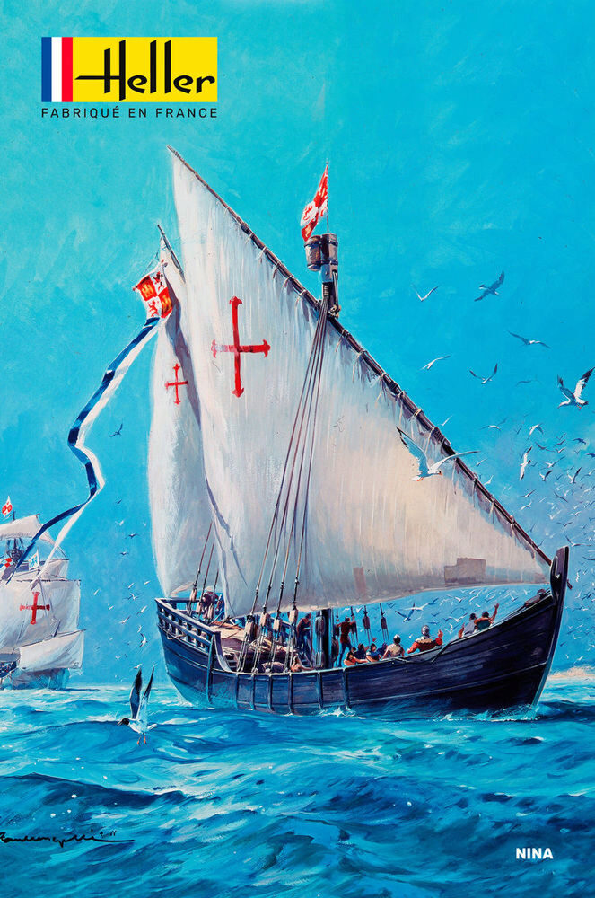 Vollrumpfmodell mit Takelgarn und Plastiksegeln. Die Entdeckung Amerikas durch Christoph Kolumbus am 12. Oktober 1492 bedeutete den Beginn einer modernen Welt. Mit seinen 3 Schiffen Nina, Pinta und Santa-Maria umsegelte er die Welt und entdeckte au?er Amerika auch Kuba, Haiti und die Bahamas. Die Nina war mit Lateinsegeln ausgerüstet und galt als wendig und schnell.