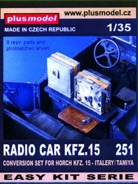 Enthält 9 Resinteile und Fotoätzteile. Umbausatz für Horch Kfz. 15 mit Funkgeräten.