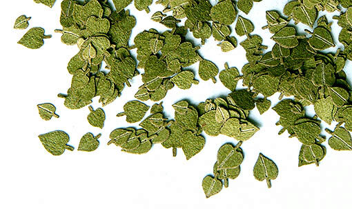 Täuschend echte Laubnachbildung aus lasergeschnittenem, eingefürbtem Papier.