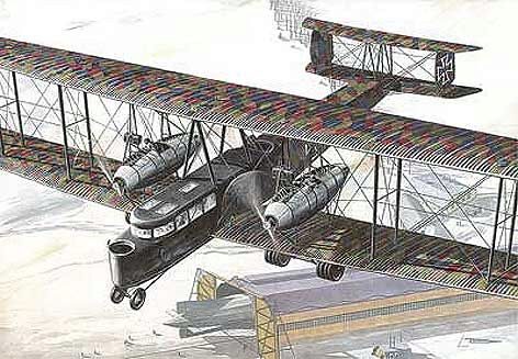 Mit detaillierten Motoren und Innendetails wie Cockpit, Treibstofftanks, Bombenschacht. Leitern und Böcke, um die Maschine aufzubocken und Wartungsarbeiten darzustellen.Decals für die R. 27/16 mit Tarnstoff (Lozengetarnung), die mittels eines Schnittmuste