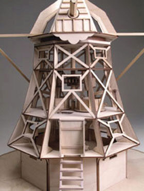 das Innere der Windmühle freigibt. Die Windmühlenflügel sind beweglich und