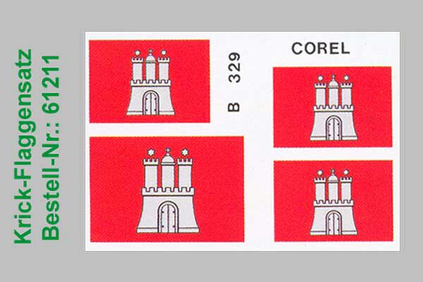 Der Segelsatz besteht aus 5 Flaggen in verschiedenen Größen.