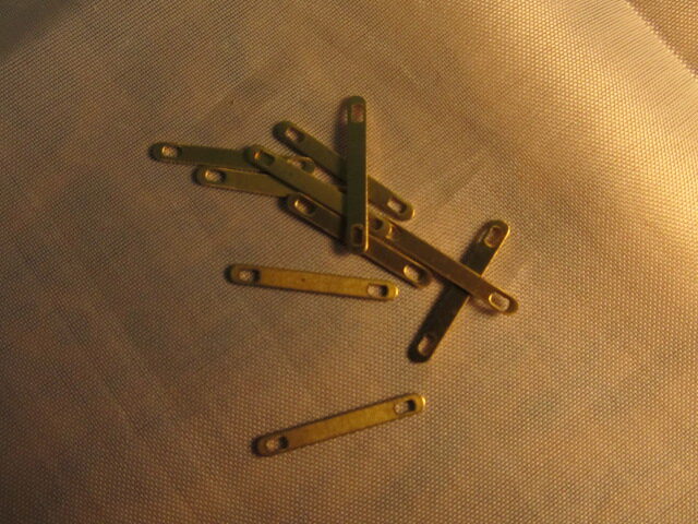 P üttingbeschlag aus Messingflachmaterial mit zwei rechteckigen Öffnungen.