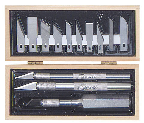 Craftsman Set in Holzkiste mit 3 Messern und 10 Klingen