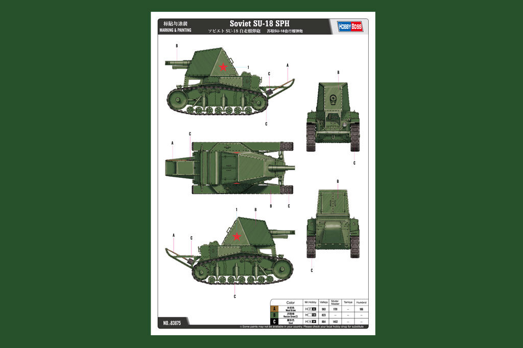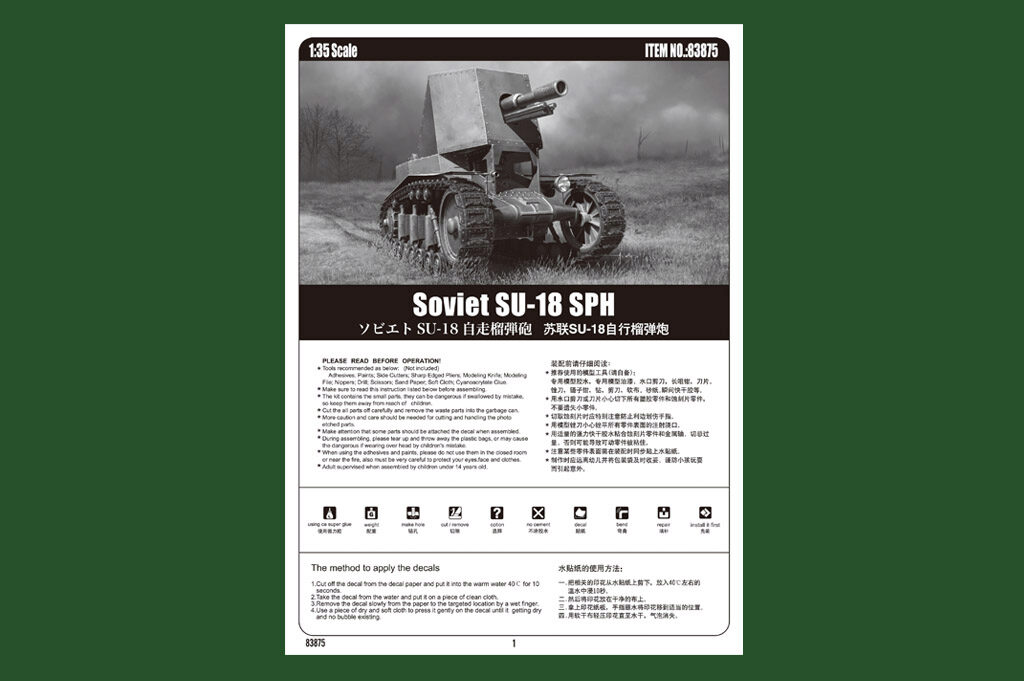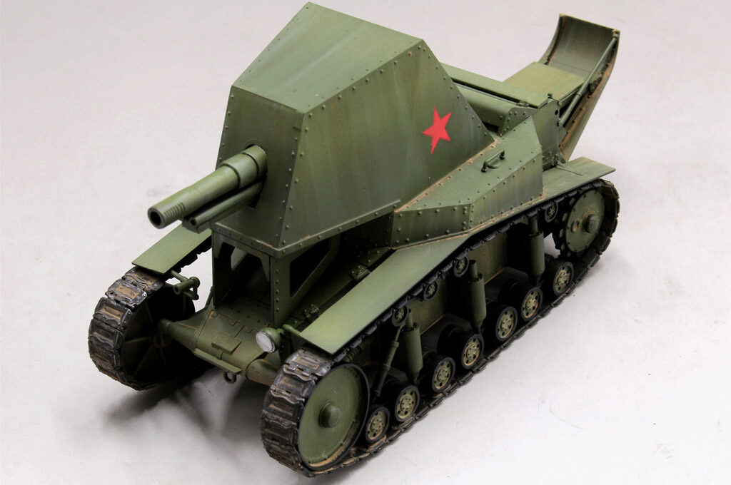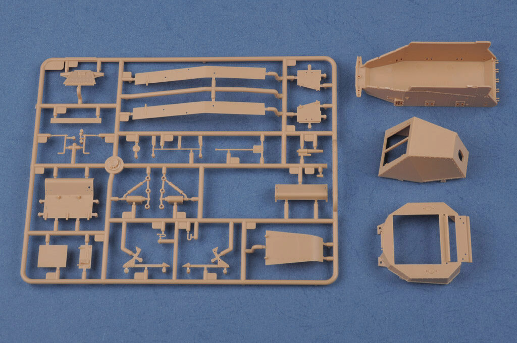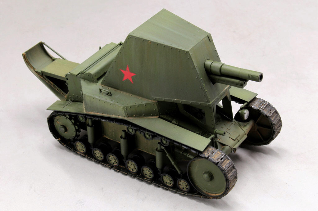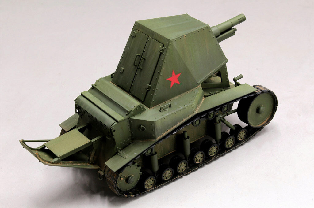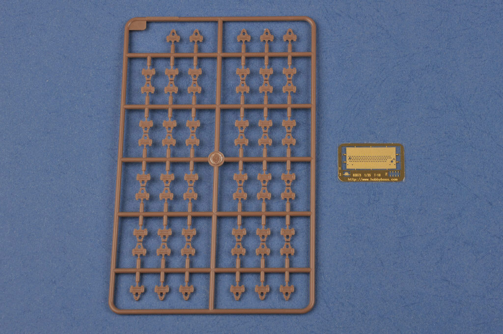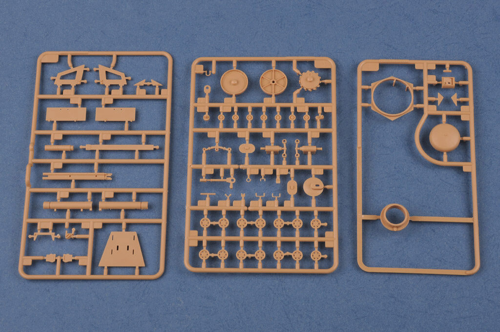 Plastikmodellbausatz eines leichten sowjetischen Panzers aus den 1920er Jahren mit 270 Teilen und Photoätzteilen. Länge gebaut 113 mm / Breite 67,8 mm.
