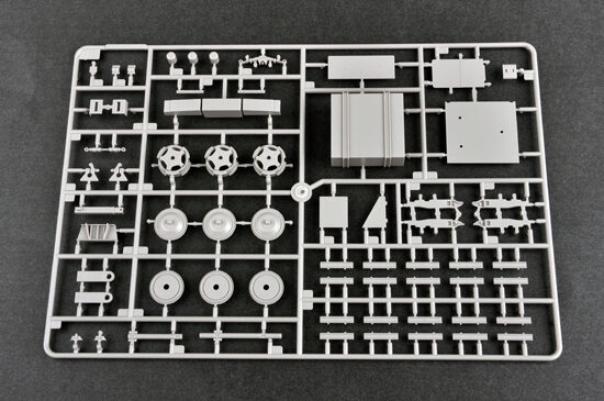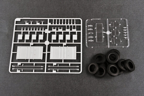 | More Features | > Detailed multi-directional slide-molded cab. > Full drive train assembly complete with engine transmission, differential housing and suspension units. > The main tires are hollow rubber with very good tread pattern > The windshield and side windows are made of clear prts. > Photo-etched parts included |