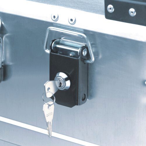 Zylinderschloss mit 2 Schlüsseln. In den Variationen gleichschliessend oder verschiedenschliessend. Leichte Montage durch Vorprägung am Hebelverschluss.