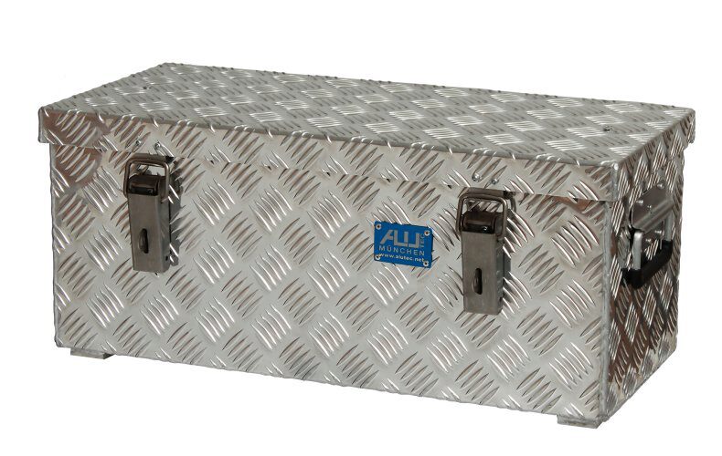 Alu-Box aus Riffelblech mit seitlichen Tragegriffen und Bügelverschluss vorne. Zum Verstauen Ihrer Werkzeuge und sperrigen Gegenstände.