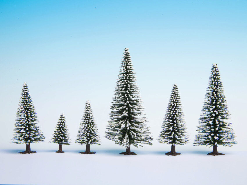 Die "Schneetannen" eignen sich ideal, um hochwertige winterliche Landschaftsszenen in einer Modelllandschaft realgetreu nachzugestalten. Wälder gibt es in der realen Natur sehr viele und auch auf einer Modelllandschaft dürfen diese nicht fehlen. Ob Laubbäume, Fichten, Lärchen oder mediterrane Bäume - die unterschiedlichsten Baumarten lassen eine Landschaftsszene noch wirklichkeitsgetreuer und idyllischer wirken. Im Winter erstrahlt der Wald mit einer weißen Schneeschicht und die kalte Jahreszeit beglückt die Natur. Die Waldtiere suchen Schutz unter den hohen Bäumen und die Menschen spazieren bei schönem, verschneiten Wetter durch den dichten Wald. Gestalten Sie mit den "Schneetannen" unter den Standard-Bäumen idyllische Naturszenen nach und sorgen Sie für einen echten Hingucker auf Ihrer Anlage.