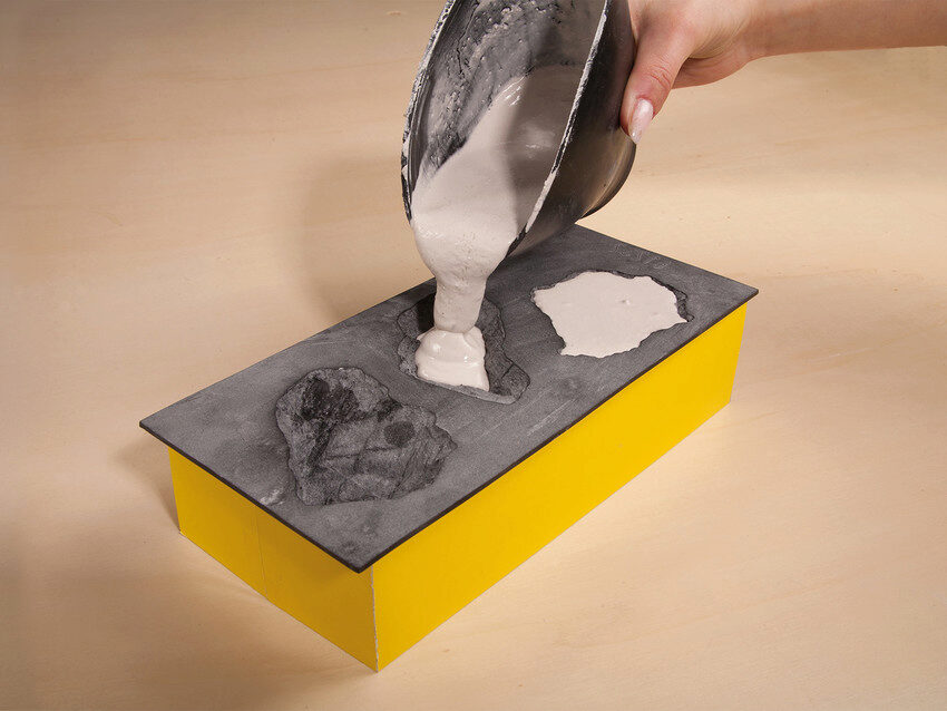 Die Verpackung der Gussformen dient gleichzeitig als stabiler Gussrahmen, welcher sich ideal zur Stabilisierung vor Ausguss mit der PROFI-Gießmasse eignet.