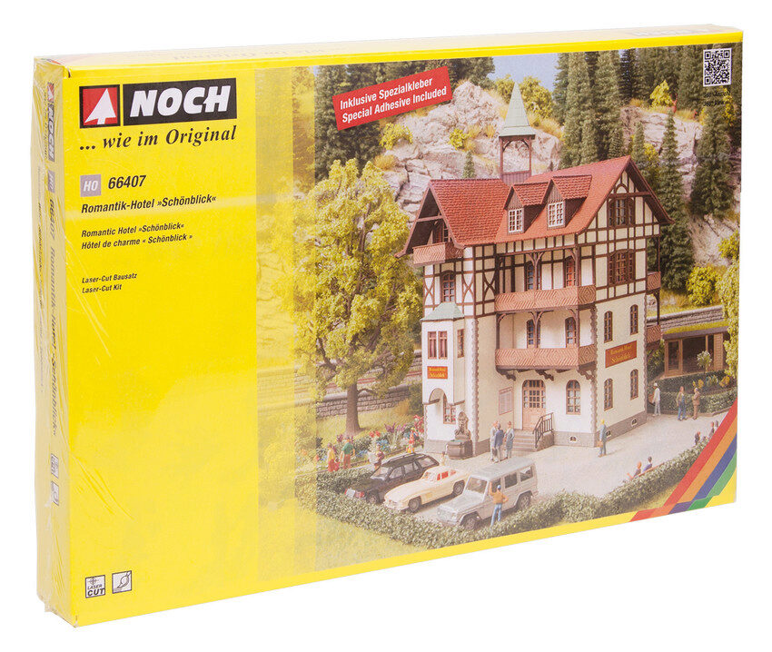 Das "Schönblick" lässt sich als Romantik-, Wellness-, Sport oder Ferien-Hotel einsetzen. Die wunderschön gestaltete Fachwerk-Fassade mit unzähligen, liebevollen Details lädt zum Träumen ein. Die Balkone sind etwas größer ausgeführt, damit dort Figuren von Gästen platziert werden können! Und das sogar mit Tisch, um z. B. ihr Langschläfer-Frühstück zu genießen. Wer möchte im "Romantik-Hotel “Schönblick” nicht gern ein paar Tage ausspannen, relaxen und die Ruhe genießen? Gestalten Sie idyllische und liebevolle Landschaftsszene mit dem "Romantik-Hotel “Schönblick” noch perfekter aus und sorgen Sie für einen echten Hingucker auf Ihrer Modellanlage.