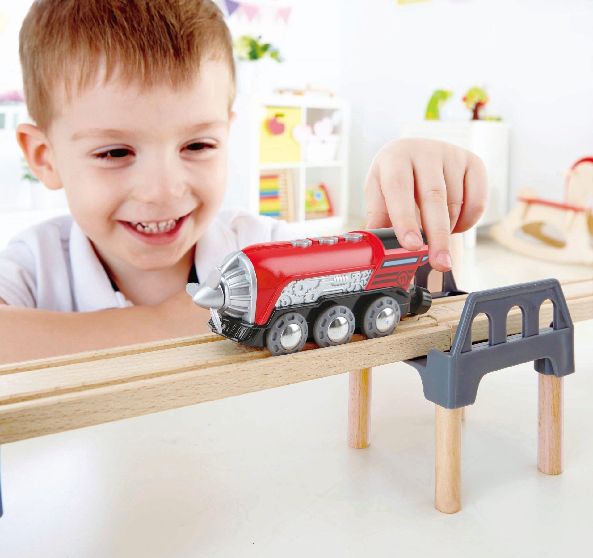 Flugzeug oder Eisenbahn Hauptsache Spass. Diese tolle Propeller-Lok kombiniert Fliegen und Fahren zu einem ganz neuen Spiel-Erlebnis. Batteriebetrieben dreht sich der Propeller, wenn der Vorwärts- oder Rückwärtsgang gewählt wird.