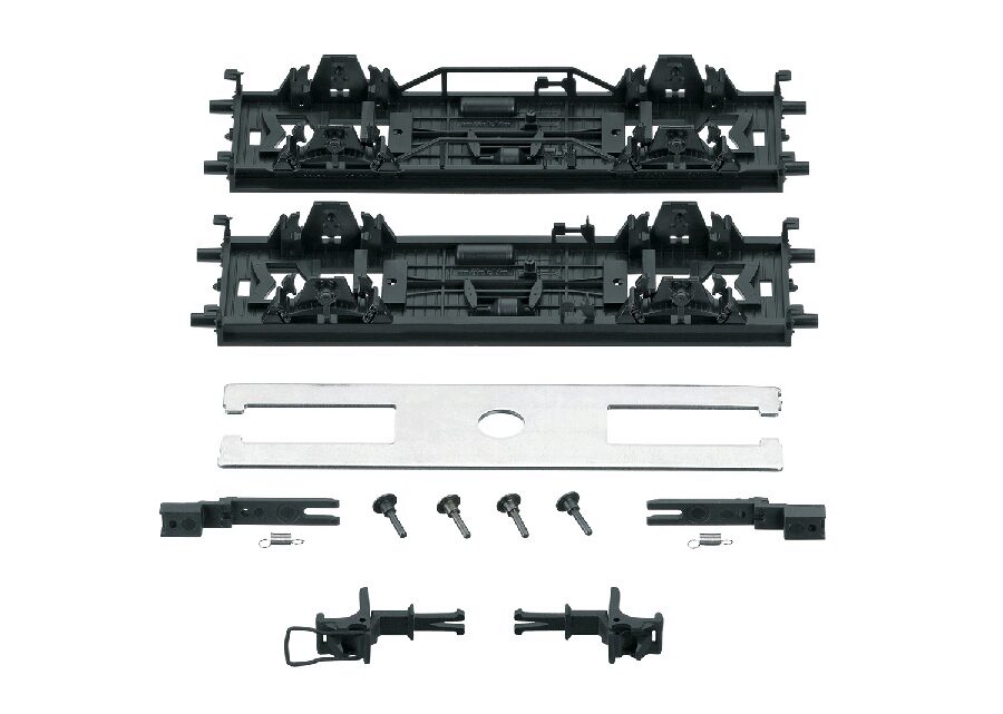 Inhalt: Alle Teile zum Umrüsten für einen Wagen aus dem Märklin Start Up-Programm (Wagen ohne Kupplungskinematik) auf Trix Express. Es liegen bei, 2 unterschiedliche Wagenböden, eine Beschwerung, je 2 Schaltschiebefedern, Deichseln und Kupplungen.