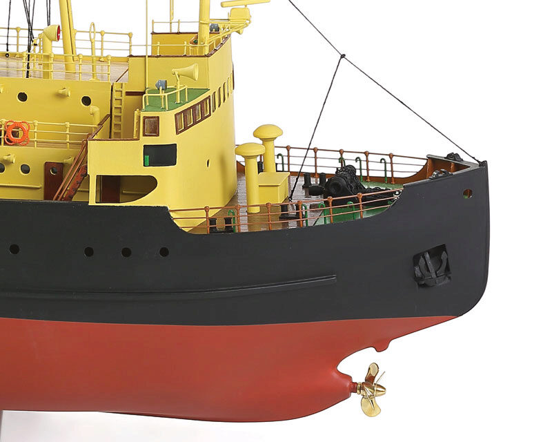 Wie auch das Original wird das Modell mit 2 Schrauben angetrieben. Das Besondere ist jedoch die Anordnung der Schrauben. Ein 4-Blatt Messingpropeller mit 50 mm Durchmesser sitzt wie üblich am Heck des Schiffes. Die zweite Schiffsschraube mit 30 mm Durchmesser ist aber am Bug montiert. Zwei Elektromotoren treiben die Schiffsschrauben an.
