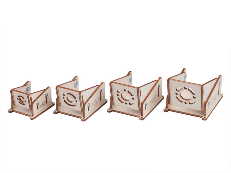 Gelaserte Holzteile mit Schrauben und Muttern.