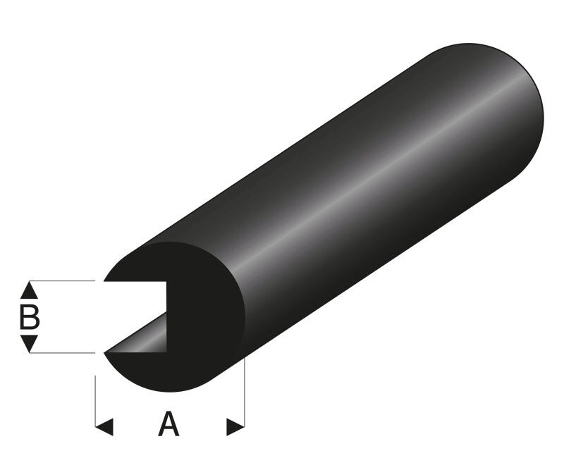 Geschlitztes Halbrundprofil aus Gummi mit 60 Shorehärte. Einsetzbar als Kantenschutz oder Scheuerleiste. Durch die Schlitzform passt sich der Gummi sehr gut an Kanten/Radien an. Zum verkleben eignet sich DELUXE Roket Cyano Gel Artikel-Nr. 44059