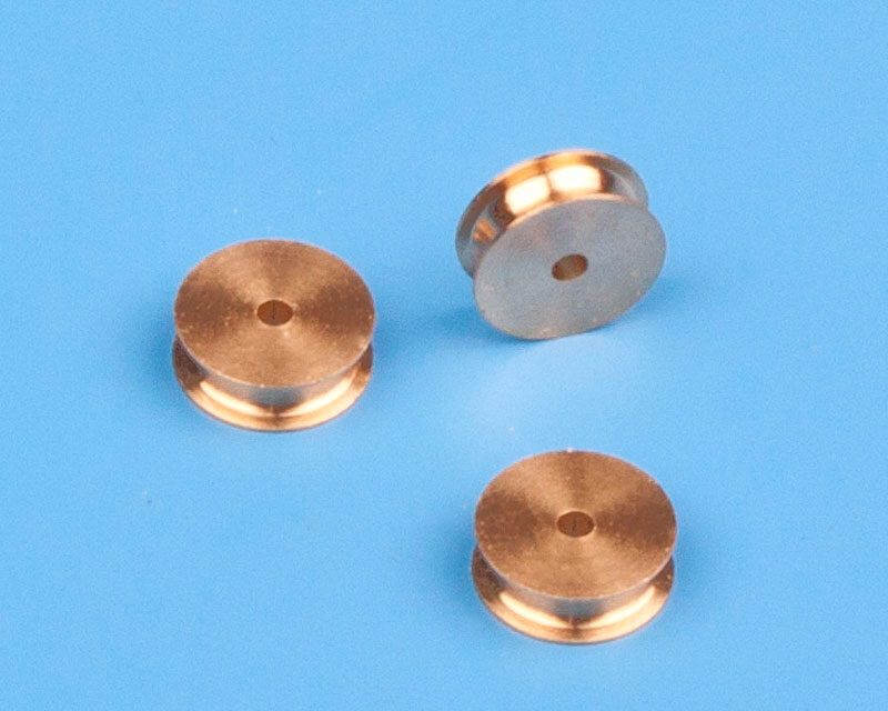 Seilrolle mit Nut und Bohrung. Aus Messing gefertigt.