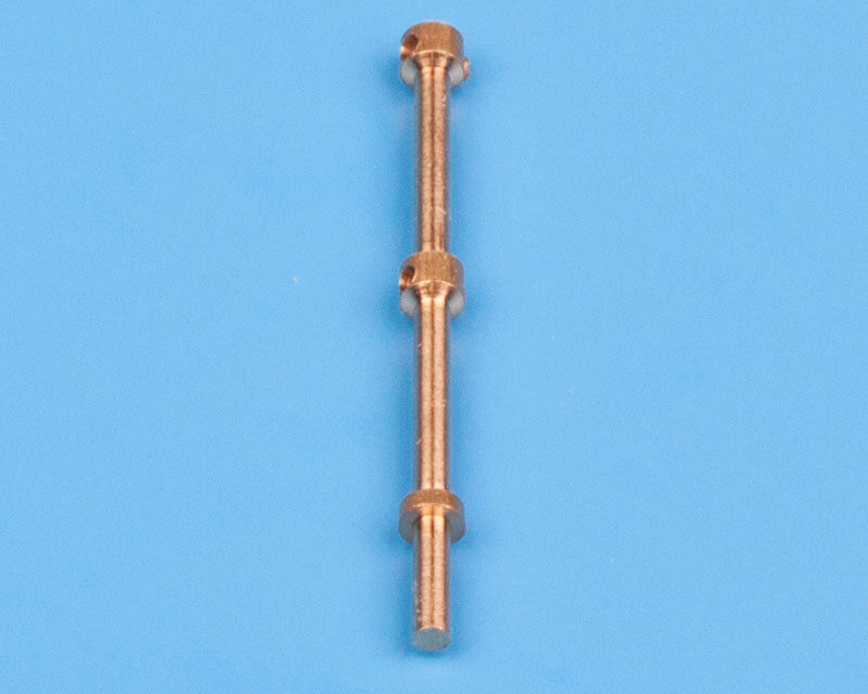 Relingstützen aus Messing mit zwei Bohrungen. Als Reling kann man zum Beispiel einen Messingdraht mit maximal 1 mm Durchmesser verwenden.