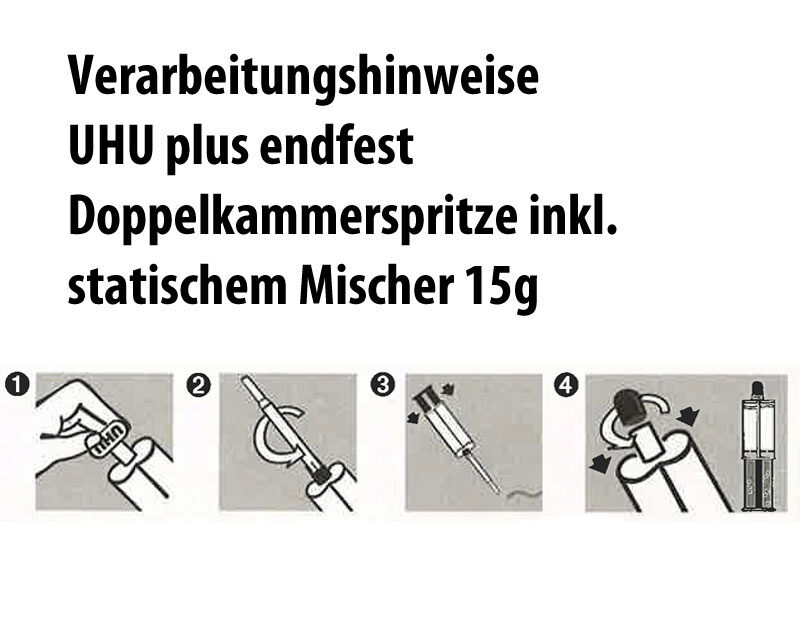 UHU PLUS ENDFEST in der Doppelkammerspritze im Set mit 2 statischen Mischern.