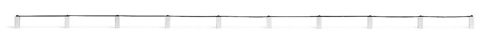 Zehn Straßenbegrenzungssteine mit Geländer. Universell einsetzbar. Bausatz. Gesamtlänge: 345 mm.