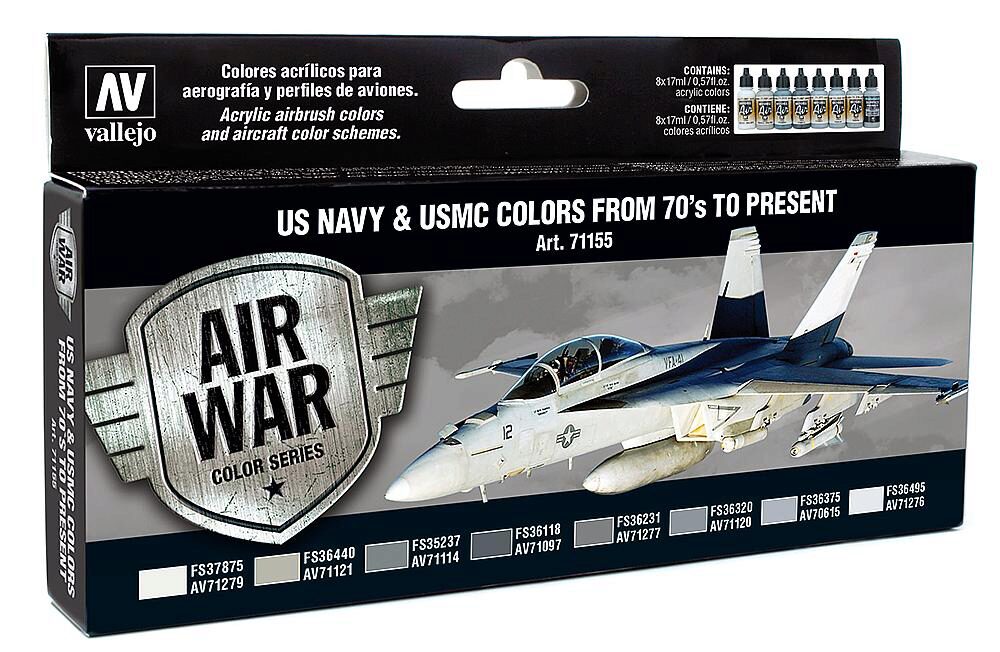 Farb-Set mit 8 Fläschchen à 17 ml. Speziell für Flugzeuge der US-Navy und USMC von 1970 bis heute.