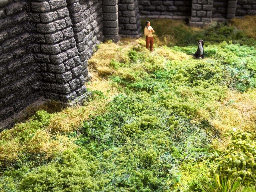 Wiesen-Foliage: Die Wiesen-Foliage wird ebenfalls elektrostatisch beflockt. Dabei kommen im Vergleich zur Wildgras-Foliage etwas kürzere Fasern zum Einsatz. Die Wiesen-Foliage findet dann auch in allen Bereichen Einsatz, in denen der Mensch in den natürlichen Pflanzenwuchs eingreift. Beispiele sind Wiesen und Weiden sowie landwirtschaftlich genutzte Flächen.