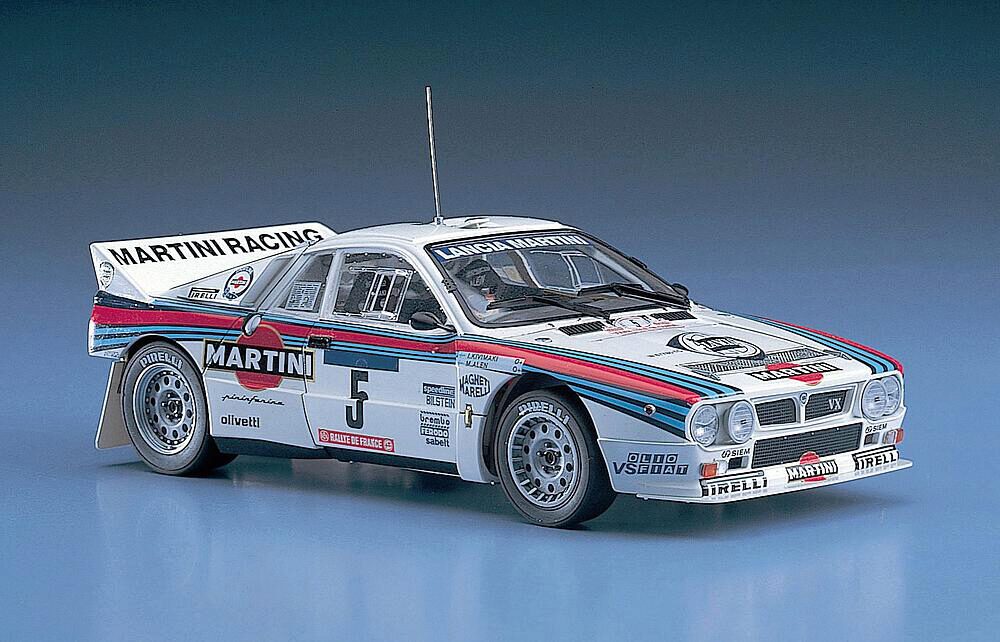 Plastikmodellbausatz eines italienischen Sportwagen, hier als Rallye-Ausführung. Markierungen der Tour de Corse 1984.