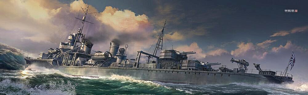 Plastikmodellbausatz eines japanischen WWII Zerstörers mit 97 Teilen, Markierung 11th Torpedo Squadron 03/1944. Länge gebaut 170,5 mm / Breite 16 mm.