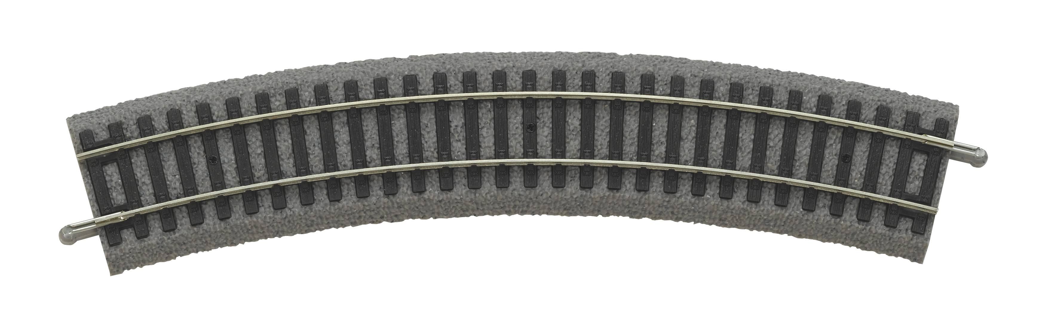 PIKO A-Gleis mit Bettung, feindetaillierten Schwellen und realistischer, scharfkantiger Schotternachbildung und Farbgestaltung. Bogen R2 Radius 422 mm.
