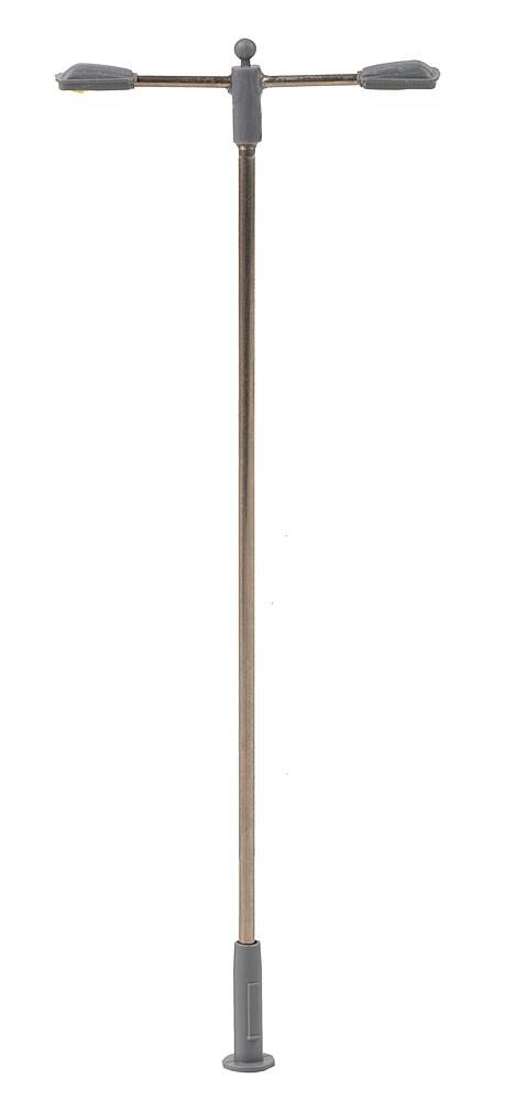 Moderne, zweiflammige Ansatzleuchte. Besonders geeignet zur Ausgestaltung von Stadt-, Straßen- und Industrieszenerien. Der Mast ist aus Metall gefertigt und die Leuchtenhöhe variabel einstellbar. Ausgestattet mit langlebiger LED-Technik. Höhe: 93 mm.